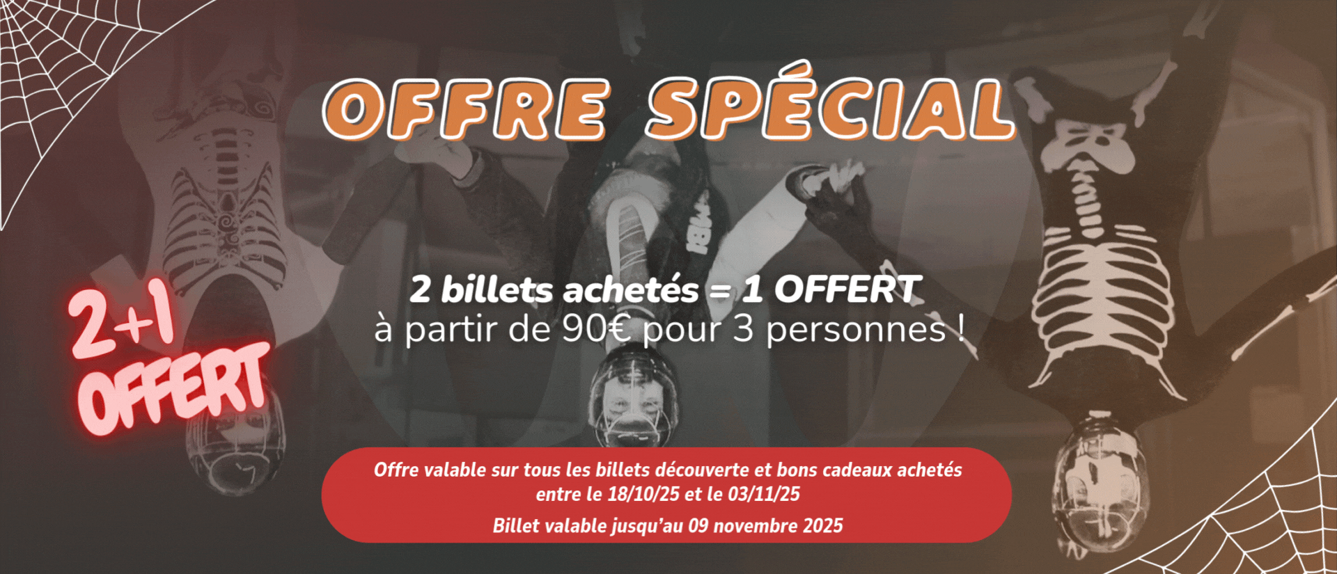 ✔ 2 vols consécutifs équivalents à 2 sauts d'avion à 4000m par personne.